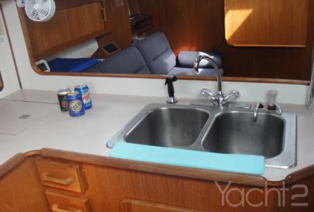 המטבח נמצא בחלקה האחורי של הסירה (משמאל) וכולל תנור, כיריים, מקרר ומקומות אכסון. מאחוריו פינת הניווט ובה תצוגה למכשירי העומק, מהירות ורוח וגם מכשירי הקשר (VHF ,SSB), פאנל החשמל ומפסקים ראשיים.