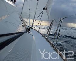 הספינה הושקה בנמל נפוליון,סמוך למרסיי, צרפת. שם בעצם מתחילה היכרותי עם ה'כלה'. היעד שלנו הוא ישראל כך שלפנינו רומן ארוך בן יותר מ- 1,700 מיילים ימיים. את המראה החיצוני שלה, הנחשף עם הורדתה למים ע"י מנוף המרינה, מזהים מיד את "האודיסיאה של השמש" המתגלה במראה המוכר והמזוהה עם היצרנית, Jeanneau וסידרת ה- Deck Saloon המשויך לה. הסיפון משופע בחלונות גדולים וקהים, וחלונות הצד של הסלון משווים לעיני חתול מלוכסנים. הקוקפיט מחולק לשלושה חלקים כאשר החלק האחורי מהווה עמדת היגוי כפולה ושני ספסלים. מתחת לכל אחד מהם ישנו תא אחסון ובניהם ומתחת לסיפון ישנו תא גדול מאוד שבו מותקן גנרטור, אטום עם בידוד מעולה כך שבקושי שומעים אותו ומרגישים בו בזמן העבודה, ומעליו מחיצה ואסדת ההצלה. כוונת המתכננים היא שיהיה כיסוי מלא ומוגן לאסדה, ובמיוחד שתהיה גישה אליה מבלי לצאת מהקוקפיט, הכן יתרון. אך בשעת מבחן, נדרשים סבלנות וזמן יקר שלא תמיד יש בנמצא ברגעים כאלו, שלא נדע... ומבחינה זו אומר שכבר ראינו פיתרונות יעילים יותר. במרכז הקוקפיט ישנו שולחן גדול ומתקפל, ומצדדיו ספסלי ישיבה גדולים ומרווחים כך שהתרווחנו להנאתנו 9 מפליגים מבוגרים בנוחיות רבה. 4 ווינצ'ים, אחד מהם חשמלי, ומערכת גלגלות כולם תוצרת Harken. שני המפרשים מתגלגלים ועל התורן שני מצלבים.