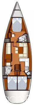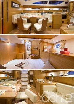 הספינה מחולקת לשלוש קבינות זוגיות, כאשר לבעלים יש את האפשרות לבחור היכן תהיה ממוקמת הקבינה שלו. באופן כללי, תאי המגורים גבוהים ומרווחים, תא השירותים הקדמי מרווח ובו מחיצה למקלחת בנפרד. תא השירותים האחורי מעט קטן וצפוף.(חבל שאינו בנוי כמו ב-S.O 49 ).